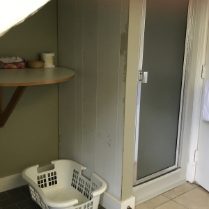 Chambre double climatisée avec douche mais les toilettes sont communes